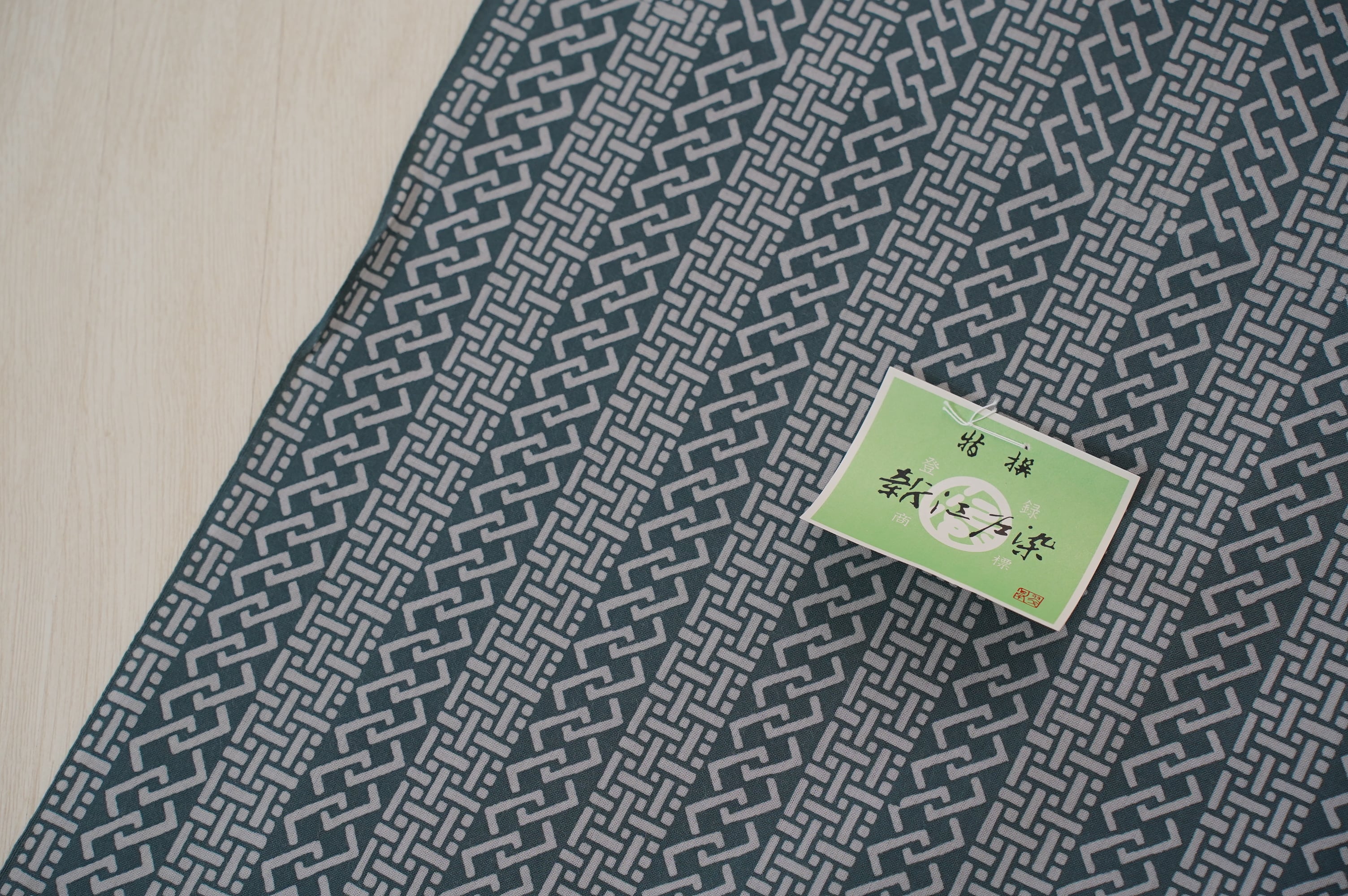 灰緑色の地色で、生地もとても上質で肌触りがとてもしなやかです。