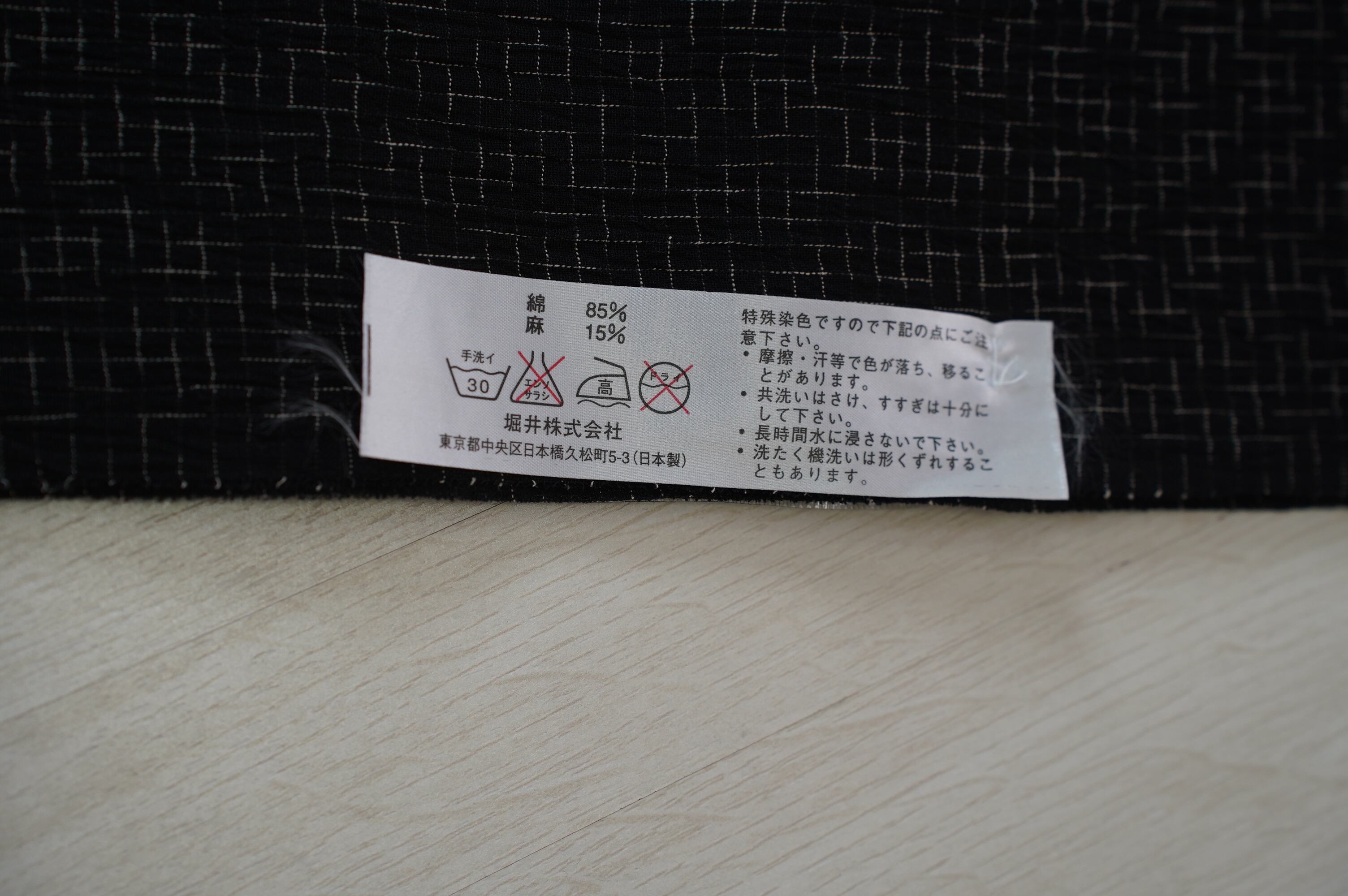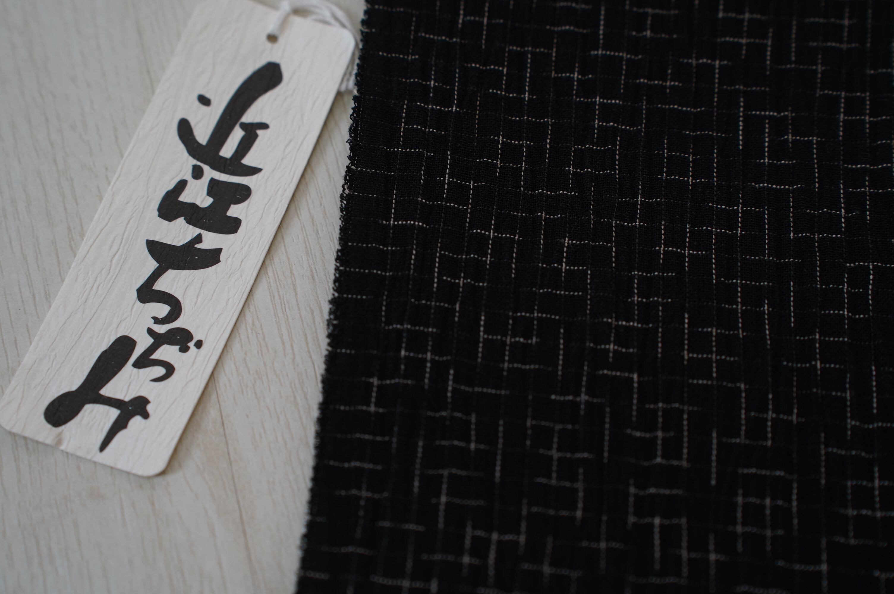 綿85%、麻15%で、ちぢみ織のシボのある、さらりとした生地です。