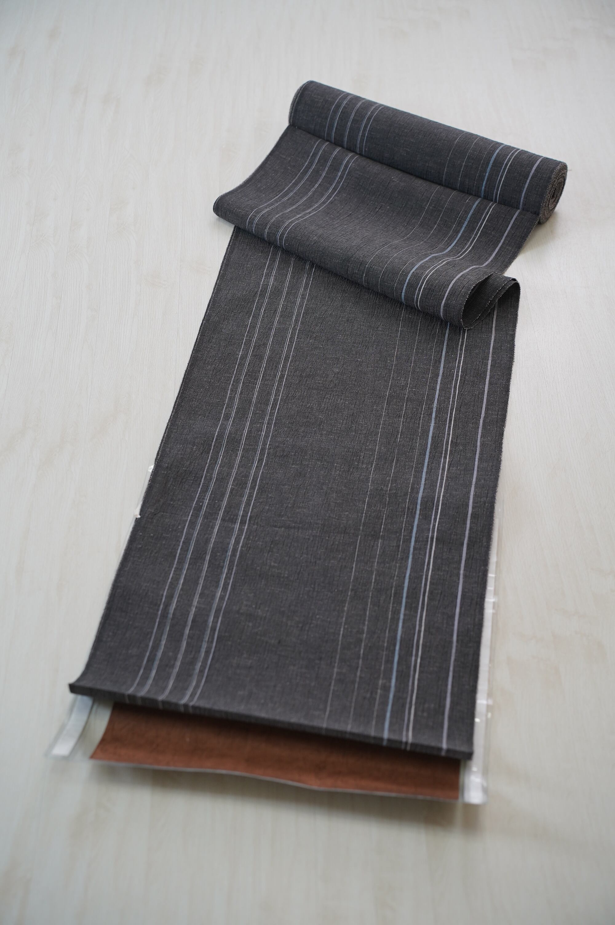 グレー地に薄紫、水色、白などのラインが織り込まれてモダンでお洒落な印象です。
