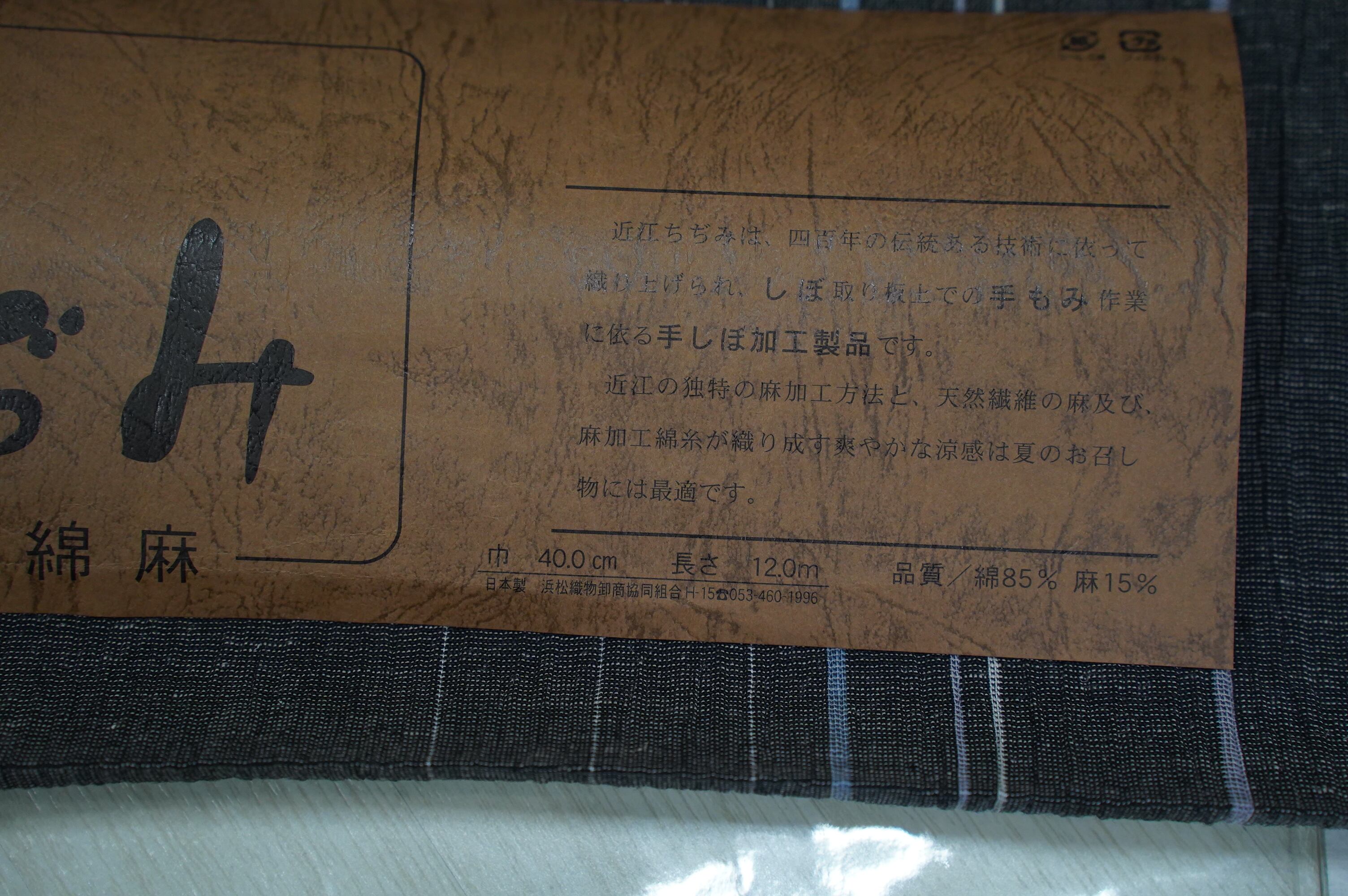 綿85%、麻15%で、ちぢみ織のシボのある、さらりとした生地です。