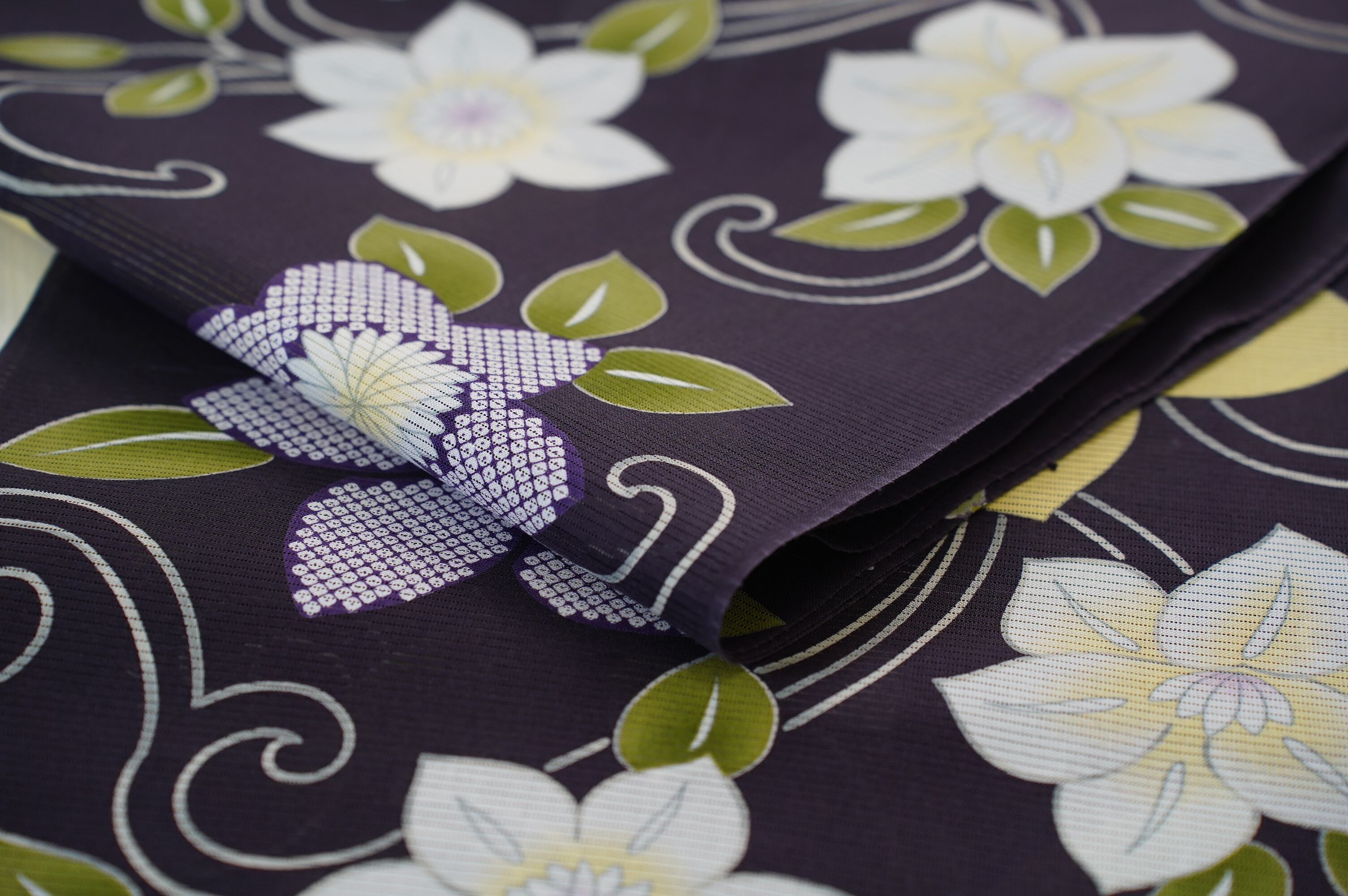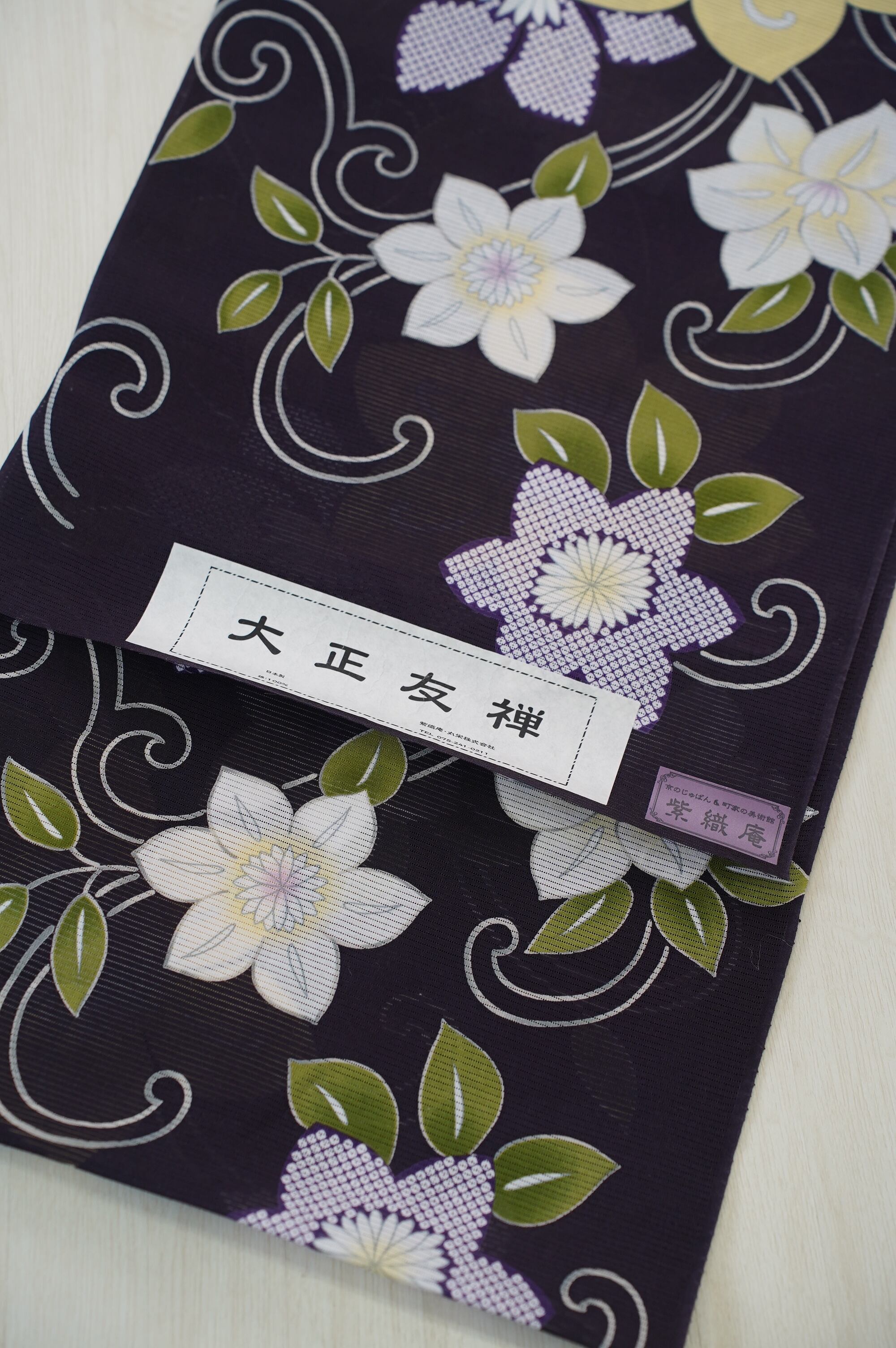 紫織庵 大正友禅ゆかた  クレマチス(地色:紫)