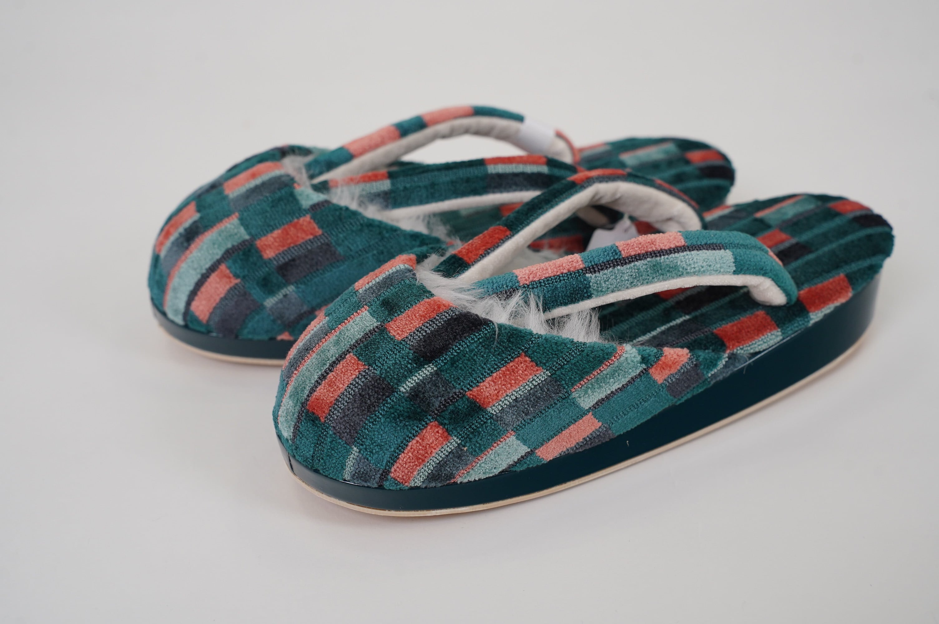 ファブリック素材を使用したお洒落な防寒草履(Lサイズ)。